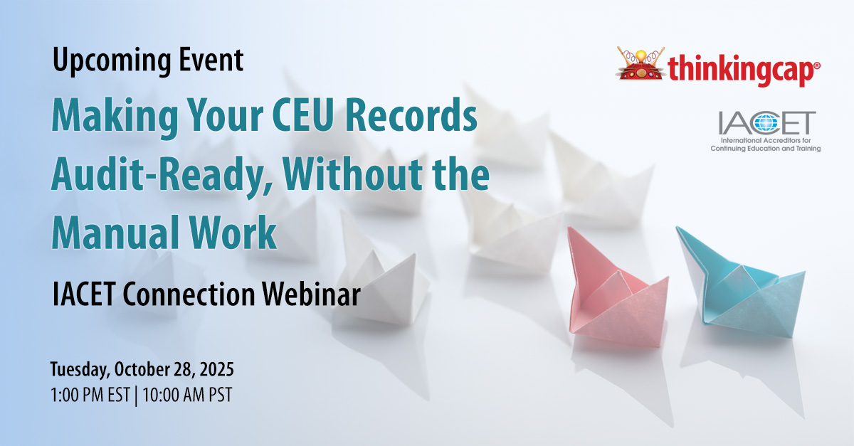 Whether you’re preparing for an IACET audit or simply want more efficient record-keeping, this webinar will show how automation can reduce administrative effort while strengthening compliance.